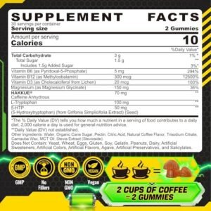 About this item TRUSTED BY HIGH-PERFORMANCE PROFESSIONALS: Needed for High concentration and more energy when facing important moments? Hakkue caffeine gummies use Caffeine Anhydrous- the scientifically studied and trusted form of caffeine used by millions of athletes and high-performance adults worldwide, delivering a faster, stronger boost than regular green tea caffeine. Designed for students, professionals, gamers and weekend warriors, caffeine gum offers effective, sustained energy and sharp focus. Its fast-acting format makes it easy to stay sharp on demand. STARTS WORKING FAST: Need to power up? Kickstart your day in just 15 minutes with caffeine gummies for adults. Our 70mg premium caffeine anhydrous formula, combined with 5-HTP and L-Tryptophan, provides controlled energy and sharper focus while avoiding the spikes, jitters, and crashes often caused by 100mg or 200mg high-dose caffeine pills, giving you clean, no clash energy and support daily concentration whenever you need it. Perfect anytime you need a quick boost to feel alert, energized, and ready to tackle your day. STAY SHARP ENERGIZED, AND READY TO PERFORM: Brain supplement gummies are enhanced with Vitamin D3, B6, Methyl B12, and Magnesium Glycinate for optimal mentãl and physical performãnce. Vitamin D3 and B6 support cognitive function, while Methyl B12 boosts focus and energy. Magnesium Glycinate is included to support memory, concentration, and cognitive clãrity. Focus supplement are perfect for long workdays, study sessions, or high-intensity workouts, this nootropic supplement keeps you sharp and energized without the crash. PORTABLE, TASTY & FLEXIBLE ENERGY: These focus gummies perfect for busy professionals, gamers, students, and weekend warriors, these coffee-flavored brain gummies deliver smooth, controlled energy wherever you go. Skip the bitter pills and messy powders-take two for extra focus. Convenient, easy to go and delicious, they provide on-the-go mentãl clarity and sustained alert ness anytime you need it. SMART ENERGY FOR ANYTIME PERFORMANCE: Hakkue brain health supplements for adults gummies are sweetened with Organic Cane Sugar and Natural Coffee Flavor, providing a clean, balanced energy boost without heavy stimulants. Vegan, non-GMO, gluten-free, and free from artificial sweeteners. Perfect for professionals, athletes, gamers, and students alike. These gummies for gamers are the perfect replacement for coffee or sugary energy drinks. Show more$28.59Sku: B0FN46ZZN6