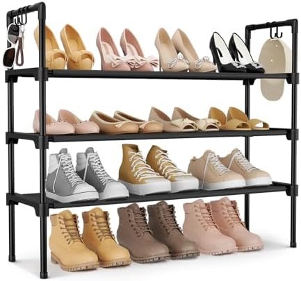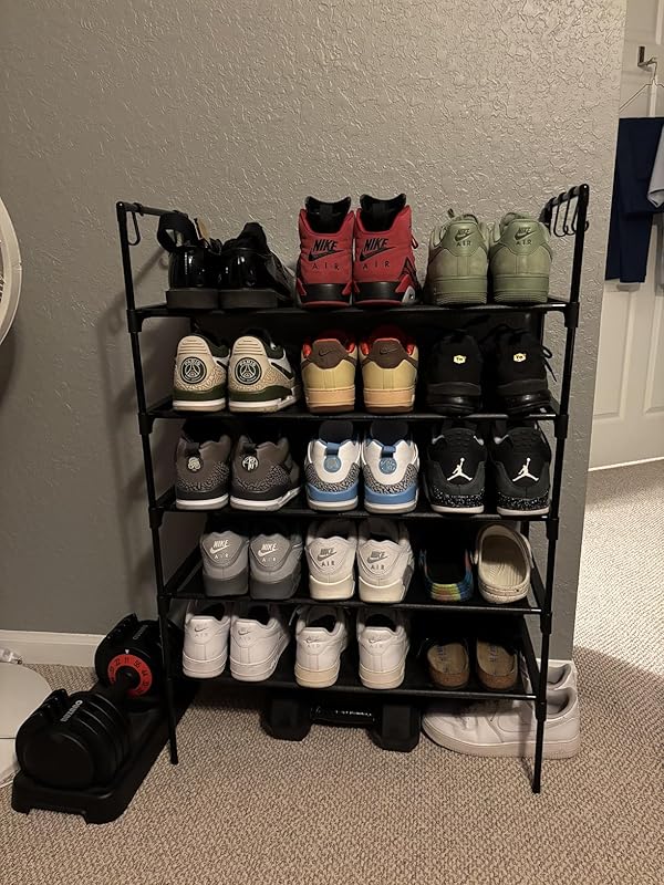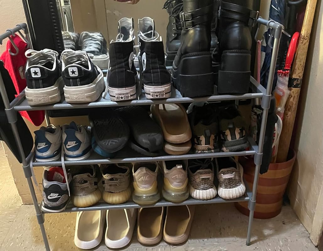 I bought this shoe rack back in June of this year when I moved into my first apartment. I was completely out of money at the time because of the move, rent and other financial responsibilities. I was looking for a shoe rack that could hold my shoes but at a reasonable price. I initially brushed this one off because I thought it looked cheap and would probably fall apart after a little while.However I couldn’t find a shoe rack that I liked and wasn’t too expensive. I was getting annoyed by having my shoes on the floor so I decided to just buy this one. I honestly don’t regret that decision because this has been an incredibly reliable shoe rack. It holds four pairs of my shoes on each tier and you can also put shoes under it as an extra layer, if you don’t mind your shoes touching the floor. I have had no issues at all with the rack itself falling apart or any other structural issues so I would say it holds up incredibly well. It was super quick to put together and it comes with little hooks to put on the side which is where I leave my car keys. I’m at the point where i’m looking for a new shoe rack because I can now afford one that I like aesthetically as well. This is a really good shoe rack though, if you need a cheap one and don’t mind how it looks.
