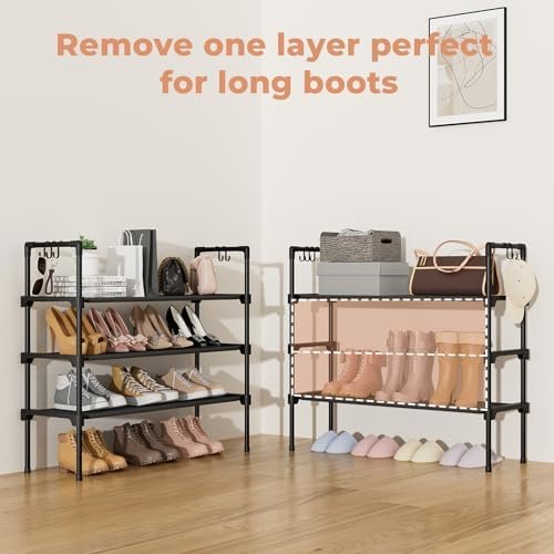 We bought this shoe rack to tackle the constant shoe pile in our mudroom, and it worked immediately. It organizes shoes without hiding them, so everything is still easy to grab on the way out the door. The hooks are perfect for backpacks, jackets, or leashes, and the rack feels sturdy once assembled. Setup was quick, and it made the whole space look cleaner and more functional. Great solution for busy entryways.