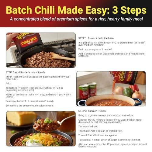 Big chili flavor without the burn. Rustler’s Mild Chili Mix is a carefully balanced blend designed to deliver a rich, classic chili taste with mild heat—perfect for families, meal prep, and anyone who wants a satisfying bowl without “too spicy” complaints.