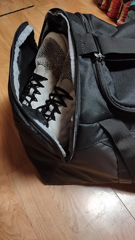 This is a very nice bag. Not sure if the material is as resilient as the Nike Brasilia, which I have in a medium, but we’ll see. The Brasilia also might have the edge for water resistance since the bottom is a rubberized material that wraps seamlessly along the bottom and up the sides moreso than the Under Armour bag, althoug the Under Armour is indeed water resistant. I bought the large in the Under Armour because the shoe “pocket” on the Brasilia is full a compartment the runs the length of the bag, under the main compartment. While this is a nice feature, it makes the main compartment essentially smaller than the overall size of the bag because there’s a permanent divider between the main compartment and the lower compartment. For me, having that feature in a medium sized bag works out great as a gym bag because the main compartment is still big enough to take workout stuff with you, and you can put your dirty clothes and gym shoes in the bottom section after a workout. But, my use for a large size bag is for carrying around multiple jackets and gear as a dog trainer, so I wanted to be able to carry, and find, everything in one compartment, whereas I would have had to separate gear between main and bottom compartments on the Brasilia in order to fit everything in one bag. Additionally, since the UnderArmour’s shoe compartment is on the side of the bag and extends into the interior of the bag, if you choose not to use the shoe pocket the interior of the bag is still the full length of the bag. I recently traveled somewhere for a few days and used the Under Amour’s side shoe pocket, and I still had more room than I needed in the main compartment. And, the shoe pocket is quite large. For example, it fits my Men’s Size 12 Merrell hiking boots, and still has room for another pair of regular shoes. If it matters to you, the interior of the bag is bigger than the opening of the bag – just pointing that out. The only drawback to the Under Armour bag is that the shoulder strap only disconnects from the bag on one side so you can’t completely remove it. In other words, if you want it out of the way, it either dangles or you have to stuff the strap into a side pocket while it’s still connected on one end, which means you can’t close that pocket! What numbskull thought of that design? Might not sound like it’s much of an issue, but it is annoying if you don’t want to use the shoulder strap, so if you’re the type that prefers not to use the shoulder strap it very very much deserves to have one star (if not more) for that dumb design. Hope this wasn’t too much information.